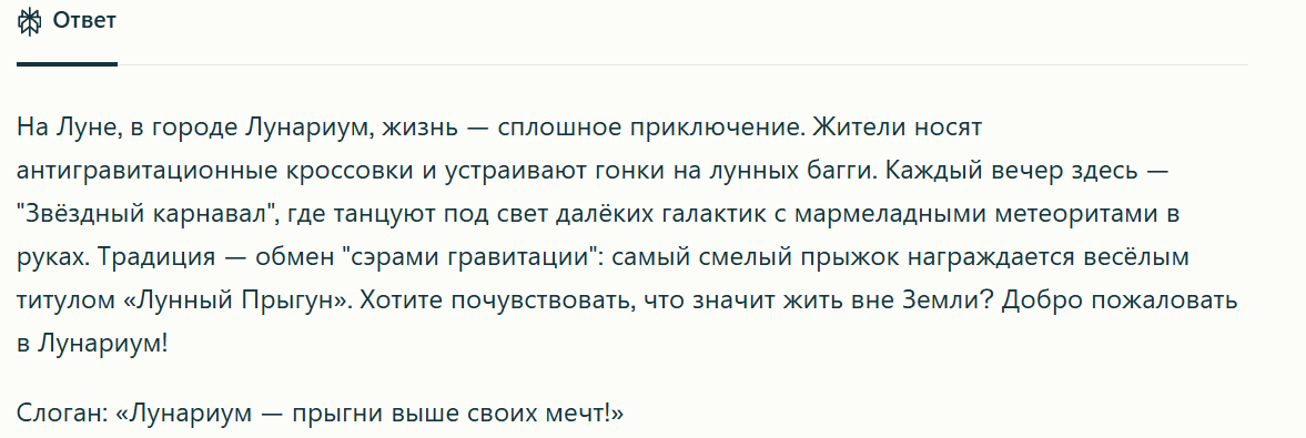 Вариант Perplexity неожиданно эмоциональный и яркий, с множеством живых деталей, но в тексте встречаются непонятные обороты вроде «сэров гравитации», которые могут сбивать с толку. У ChatGPT текст более аккуратный и плавный, легче читается, но выглядит немного суховато и сдержанно. В целом обе нейросети справились примерно на одном уровне: идеи похожие, есть попытки креатива, но в обоих случаях текст требует доработки и уточнения деталей.