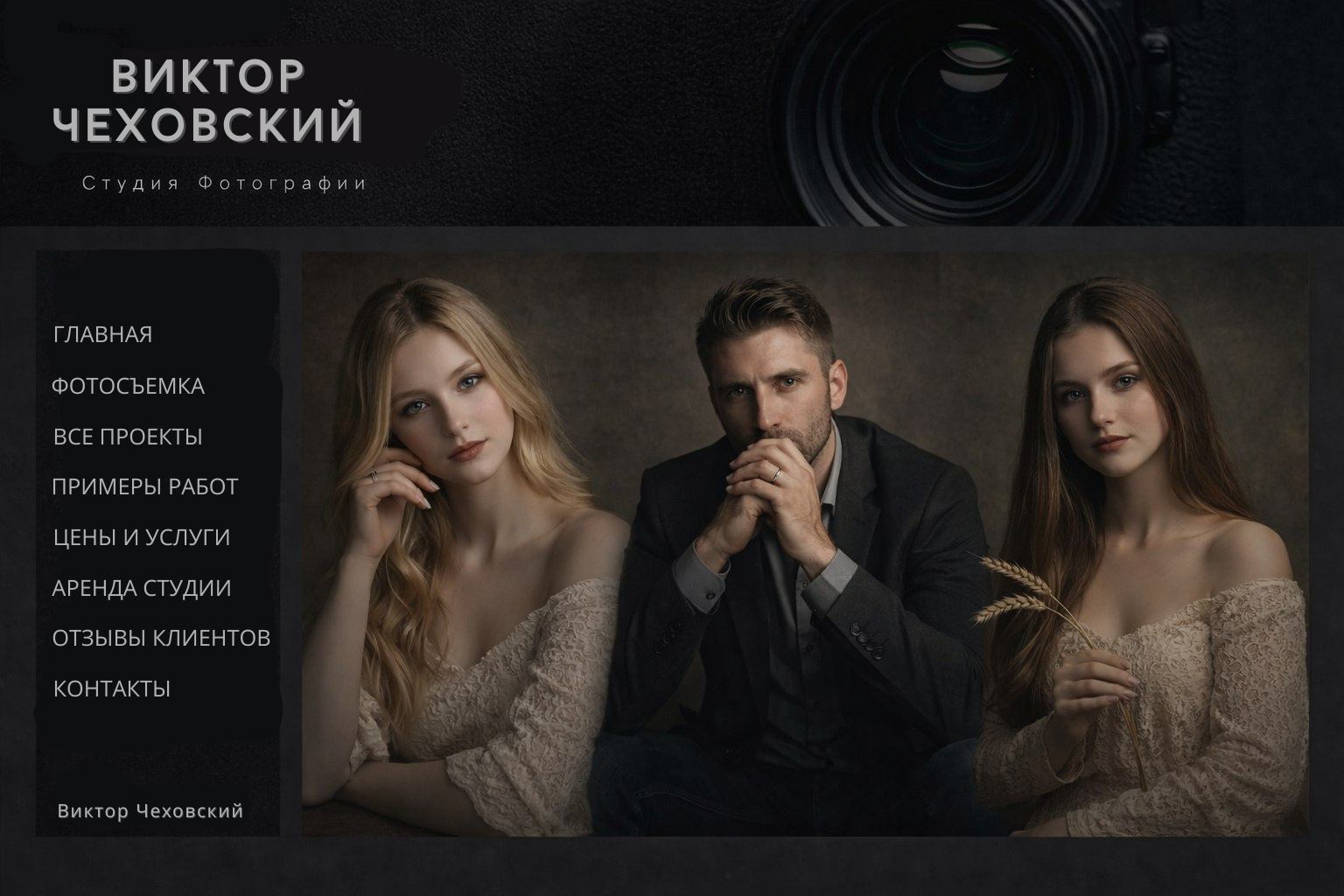 Пример удобной структуры сайта: четкие крупные надписи, вся основная информация, контакты фотографа