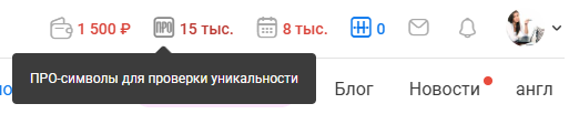 Количество символов Бонус-пакета отображается в шапке Сайта непосредственно ПРО-символами, которыми они по сути и являются.