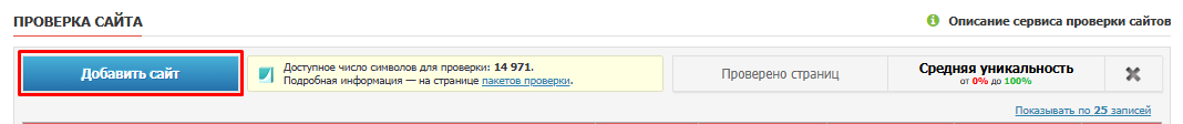 Стоимость проверки уникальности сайта зависит от размера приобретаемого ПРО-пакета символов.