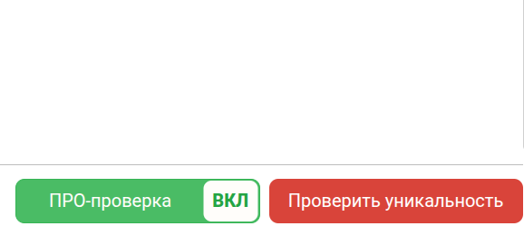 При запуске проверки на главной или на странице https://text.ru/antiplagiat обращайте внимание, чтобы тумблер был переключен на ПРО-проверку.
